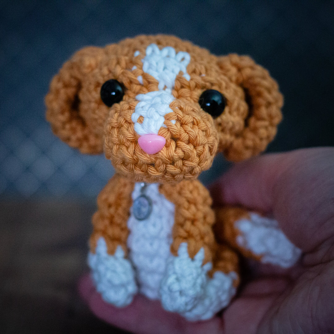 Indy, the Good boy crochet mesure environ 10cm de hauteur. Il est fabriqué entièrement à la main en coton et en rembourrage en ouate de polyester anti-acariens. Aussi, son collier est en coton mais son médaillon est en métal, peint à la main. La couleur du produit peut être légèrement différente de celle que vous voyez à l'écran.
