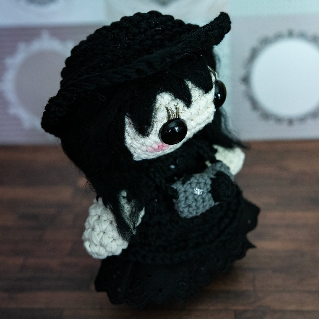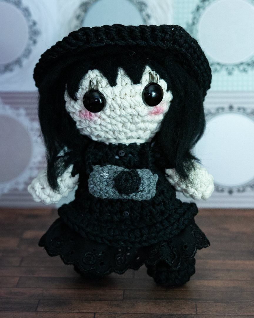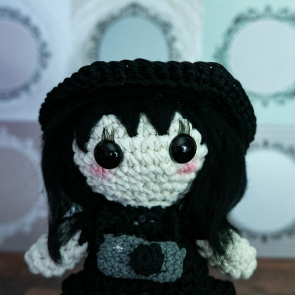 Lydia est un amigurumi (figurine en crochet) qui mesure environ 16 cm de hauteur. Elle est fabriquée entièrement à la main en coton et en rembourrage en ouate de polyester anti-acariens. Les cheveux sont en laine pure. Si toi aussi tu te sens seul dans une pièce remplie de gens vivants, elle sera forcément ton amie. Attention Lydia est une pièce unique.