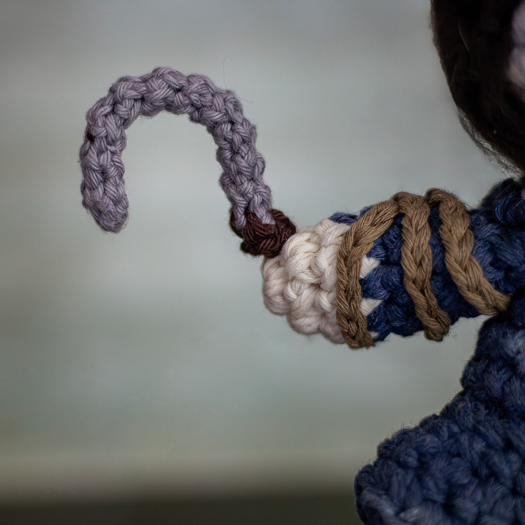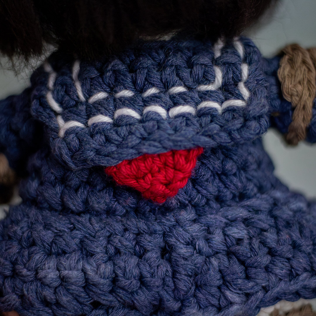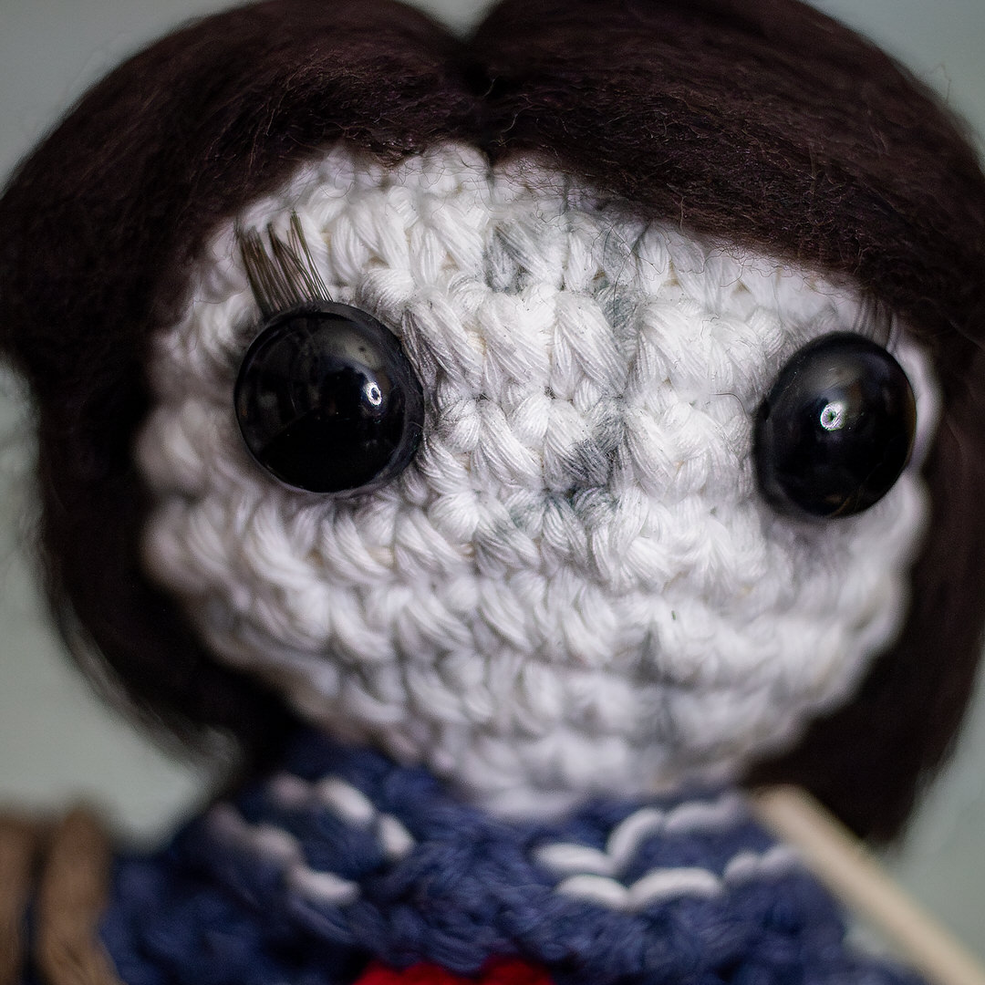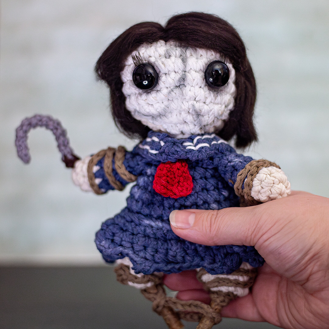 C'est une figurine hommage au jeu Silent Hill F et plus particulièrement aux épouvantails réalisée en crochet. Cette grande figurine est travaillée au détail près : des broderies du costumes jusqu'aux jambes qui sont réellement en bois. Cette figurine sera là pour te rappeler que certains monstres ne sont pas là pour faire peur mais pour te murmurer une histoire que tu n’oublieras jamais.